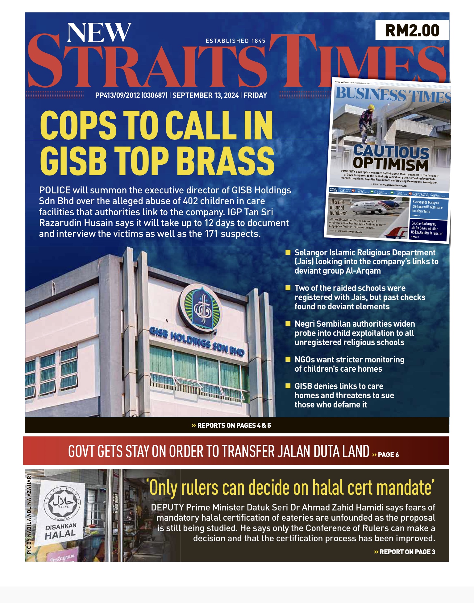 PUTRAJAYA 13 Sept. – Jabatan Kemajuan Islam Malaysia (Jakim) akan membawa isu berkaitan Global Ikhwan Service and Business Holding (GISBH) ke Jawatankuasa Muzakarah Majlis Kebangsaan Bagi Hal Ehwal Agama Islam Malaysia (MKI). Menteri di Jabatan Perdana Menteri (JPM Hal Ehwal Agama), Dr Mohd Na’im Mokhtar, berkata, langkah itu bagi memutuskan persoalan berkaitan akidah. Katanya, jawatankuasa khas juga akan ditubuhkan bagi menjalankan siasatan dan kajian terperinci terhadap doktrin fahaman kumpulan GISBH bagi proses pembanterasan hingga akar umbi dan ajaran menyeleweng. Jawatankuasa itu akan diselia Pejabat Menteri di JPM (Hal Ehwal Agama)…