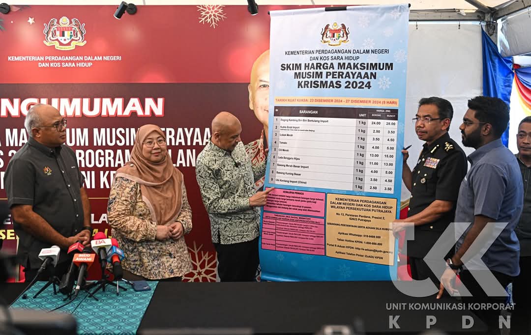 KUALA LUMPUR 20 Dis. – Mulai Isnin ini, sebanyak 14 barang keperluan diletakkan di bawah penguatkuasaan Skim Harga Maksimum Musim Perayaan (SHMMP) Krismas 2024 selama lima hari. Menteri Perdagangan Dalam Negeri dan Kos Sara Hidup (KPDN) Armizan Mohd Ali, berkata barang berkenaan turut meliputi barang tertentu khusus untuk Sabah, Sarawak dan Labuan Katanya, 14 barang itu meliputi ayam tua hidup (di Sarawak sahaja), kubis bulat import (Indonesia dan China tidak termasuk kubis Beijing), lobak merah, tomato, cili merah, lada benggala hijau, bawang merah besar import, bawang kuning besar, ubi kentang…