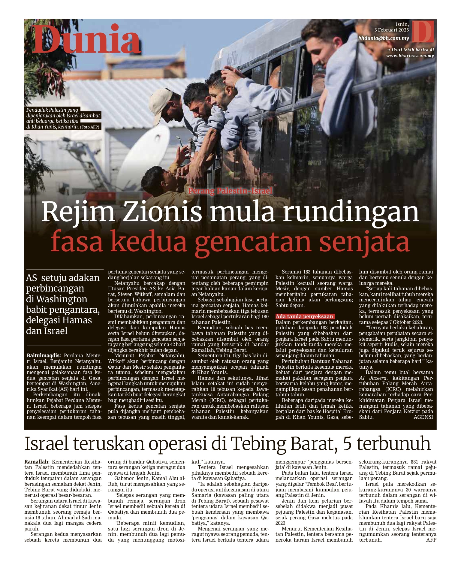 BAITULMUQADDIS – Presiden Palestin, Mahmoud Abbas, menggesa bantuan Amerika Syarikat (AS) bagi menamatkan operasi ketenteraan Israel yang berterusan terhadap rakyat Palestin. Pada masa yang sama, Majlis Keselamatan Pertubuhan Bangsa-Bangsa Bersatu (UNSC) digesa. Mengadakan mesyuarat tergempar untuk menghentikan pencerobohan Israel. Gesaan itu susulan operasi perobohan oleh tentera Israel yang bertindak meletupkan bangunan di kem pelarian Jenin di Tebing Barat yang diduduki, memusnahkan kira-kira 20 struktur bangunan. Rakaman yang merekodkan perobohan itu menunjukkan beberapa siri letupan serentak dilakukan di kem yang padat dengan penduduk. Kepulan asap menyelubungi bandar Palestin di mana tentera…