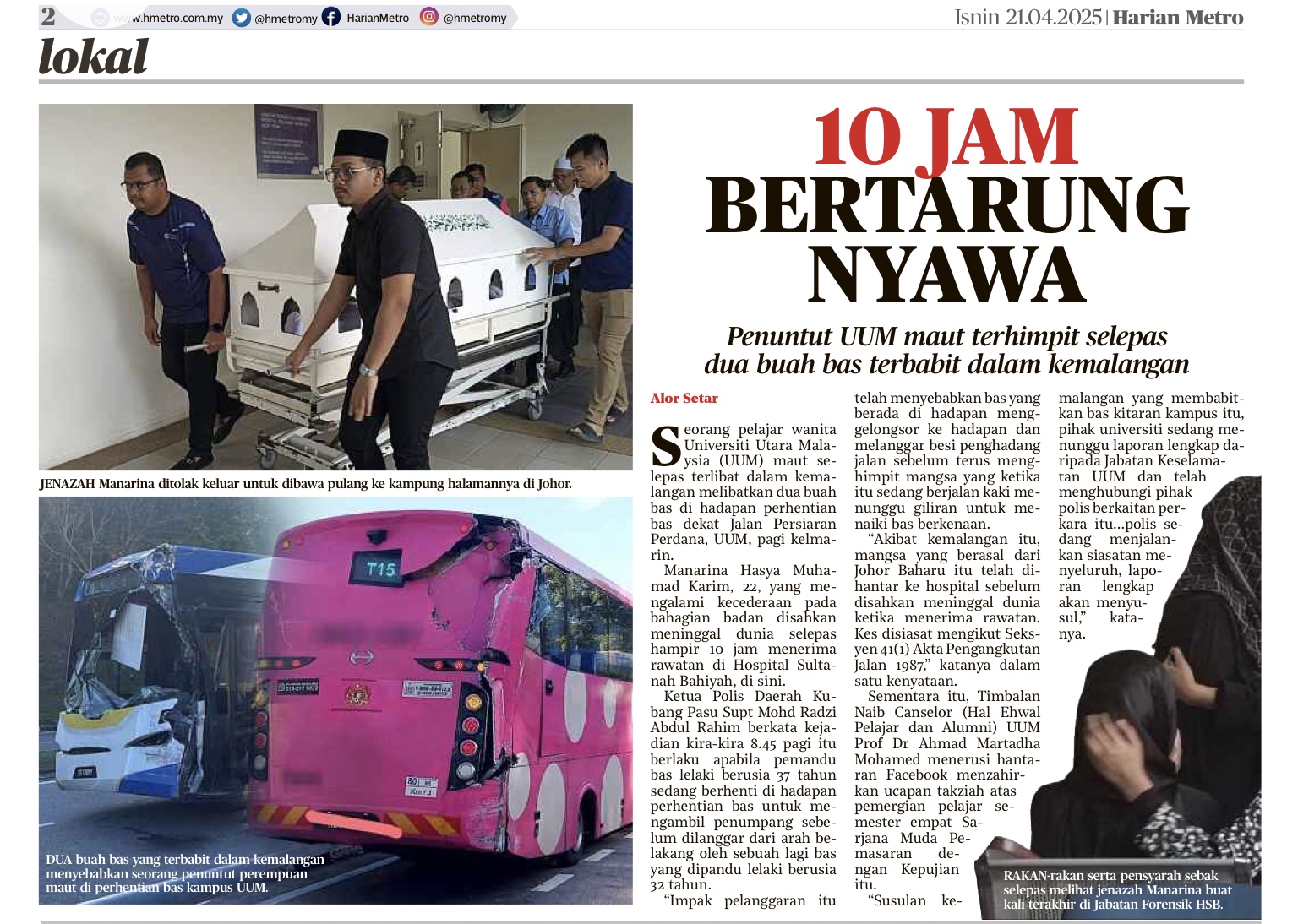 “PTPTN dengan penuh rasa simpati melalui Program Ziarah PTPTN Prihatin telah menziarahi waris kepada mangsa tragedi nahas ini, yang berlaku di hadapan perhentian bas dekat Jalan Persiaran Perdana, UUM.