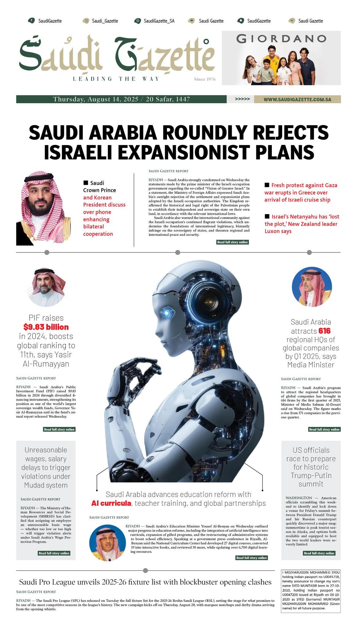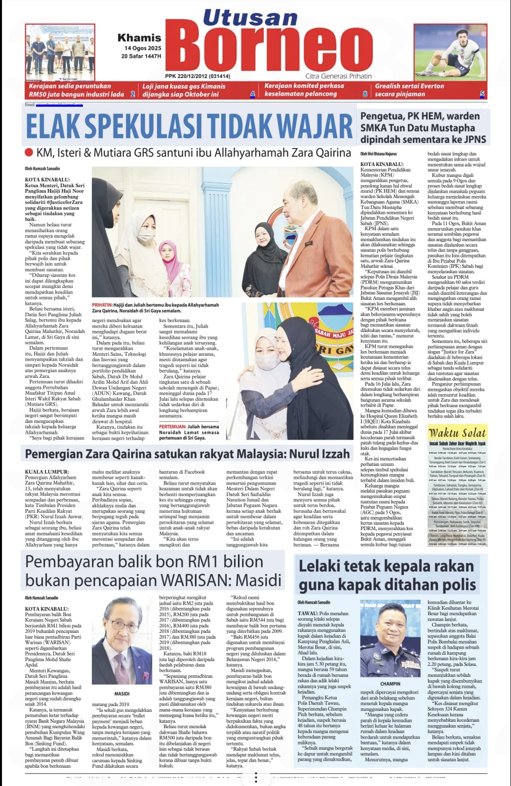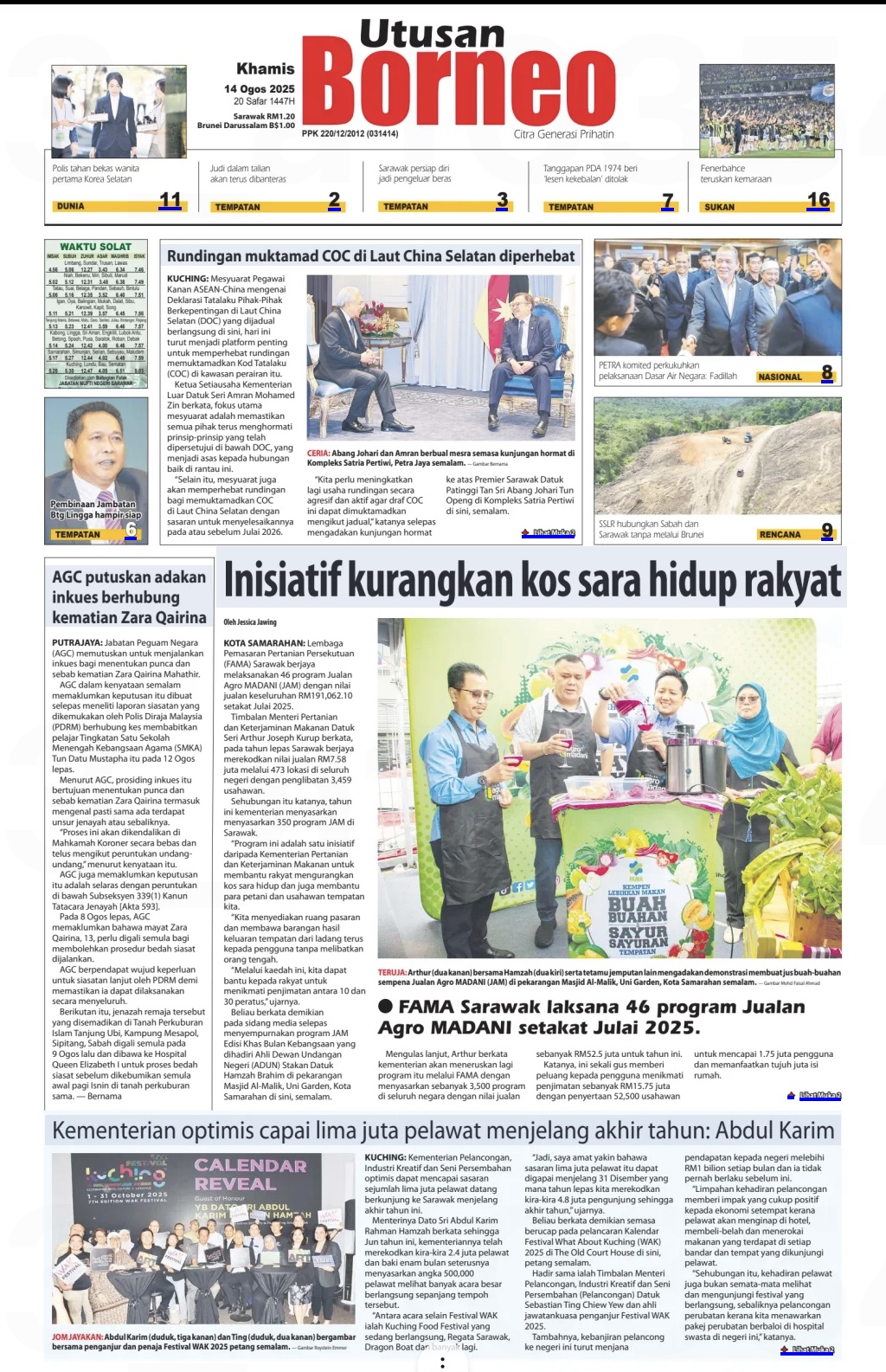 Media Hari Ini Khamis 14.08.2025