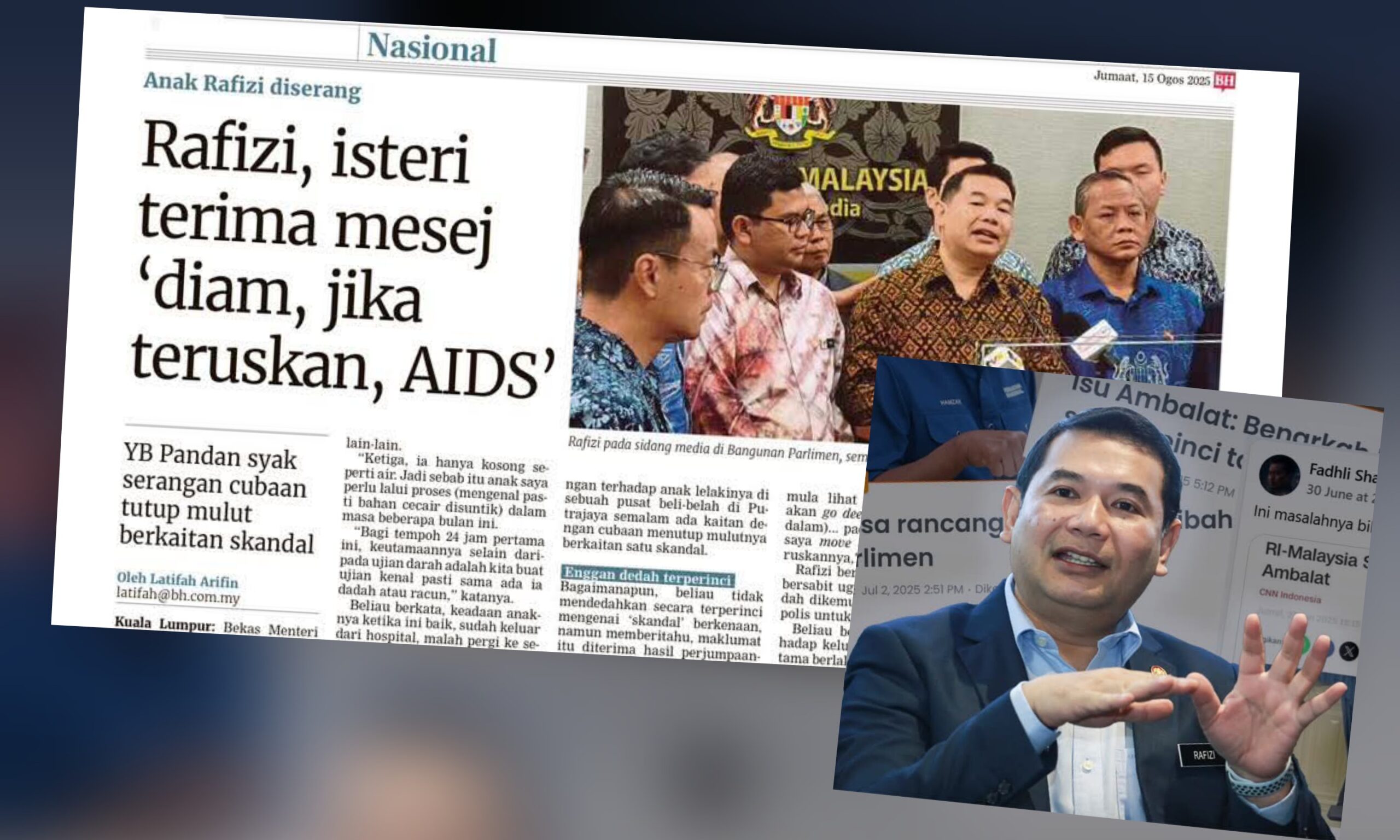 Sebelum ini Rafizi memaklumkan dua lelaki berpakaian hitam dan bertopi keledar menyerang anak lelakinya di sebuah pusat beli-belah di Putrajaya. Ketika kejadian, anak lelakinya ada bersama isterinya.