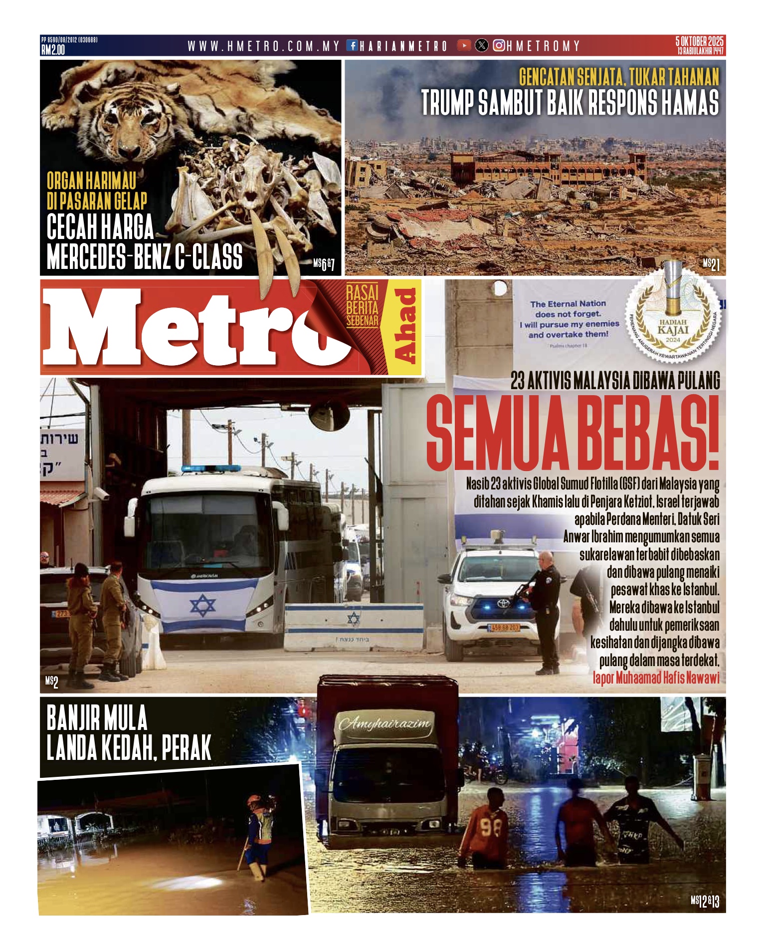 ISTANBUL – Aktivis antarabangsa yang mengikuti misi Global Sumud Flotila (GSF) ke Gaza mendakwa mereka diperlakukan dengan ganas dan ‘seperti binatang’ selepas diculik di perairan antarabangsa. Wartawan Itali, Lorenzo D’Agostino, yang menaiki flotila berkenaan bagi membuat liputan misinya, berkata mereka diculik di perairan antarabangsa ketika berada 88 kilometer dari Gaza. “Ia dua hari penuh derita yang kami lalui dalam penjara. Kami kini bebas hasil tekanan masyarakat antarabangsa yang menyokong Palestin,” katanya yang tiba di sini selepas diusir dari Israel. Agostino menyifatkan ketibaan di Pelabuhan Ashdod sebagai penuh permusuhan, dengan kehadiran…