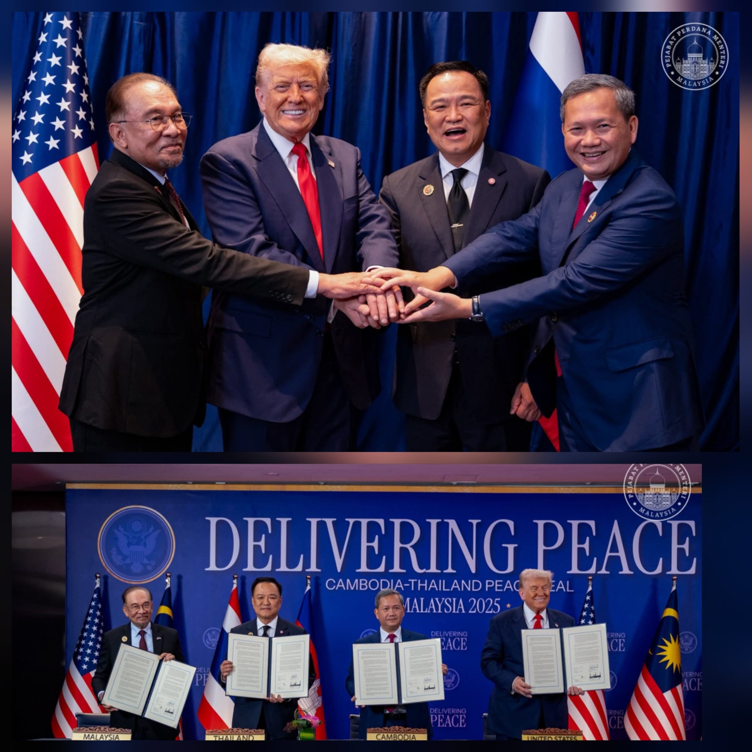 KUALA LUMPUR 26 Okt . – Thailand dan Kemboja hari ini menandatangani perjanjian damai menamatkan pertelingkahan dan memulihkan keamanan di kawasan sempadan yang menjadi pertikaian kedua-dua negara itu. “Delivering Peace – Cambodia-Thailand Peace Deal”, itu ditandatangani Perdana Menteri Thailand Anutin Charnvirakul dan rakan sejawatnya dari Kemboja, Hun Manet di luar acara Sidang Kemuncak ASEAN ke-47 dan Sidang Kemuncak Berkaitan di Pusat Konvensyen Kuala Lumpur (KLCC) di sini hari ini. Pemeteraian itu disaksikan Perdana Menteri Malaysia Anwar Ibrahim selaku Pengerusi ASEAN dan Presiden Amerika Syarikat (AS) Donald Trump. Perjanjian damai berkenaan…