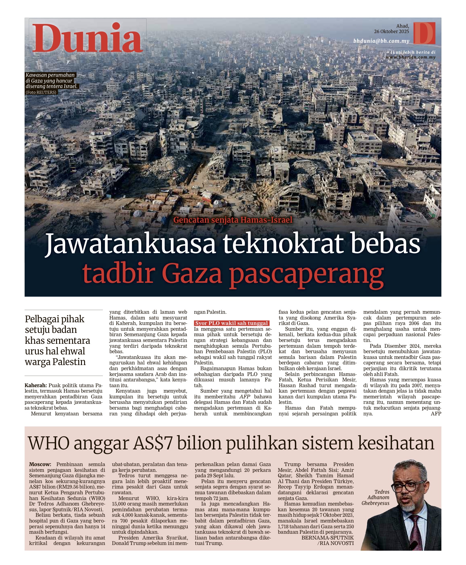 LONDON – Bekas Naib Presiden Amerika Syarikat (AS), Kamala Harris, berkata beliau mungkin akan bertanding semula untuk jawatan Presiden sebagai calon Parti Demokrat untuk pilihan raya 2028. Harris, yang menggantikan Joe Biden sebagai calon Presiden Demokrat 2024 tetapi tewas kepada Donald Trump, memberitahu saluran BBC bahawa beliau belum selesai” dalam arena politik Amerika. “Saya belum memutuskan lagi apa yang akan saya lakukan pada masa hadapan, selain daripada apa yang saya lakukan sekarang,” katanya. Walaupun belum memutuskan sama ada akan membuat percubaan semula merebut kerusi di Rumah Putih Harris berkata, anak…