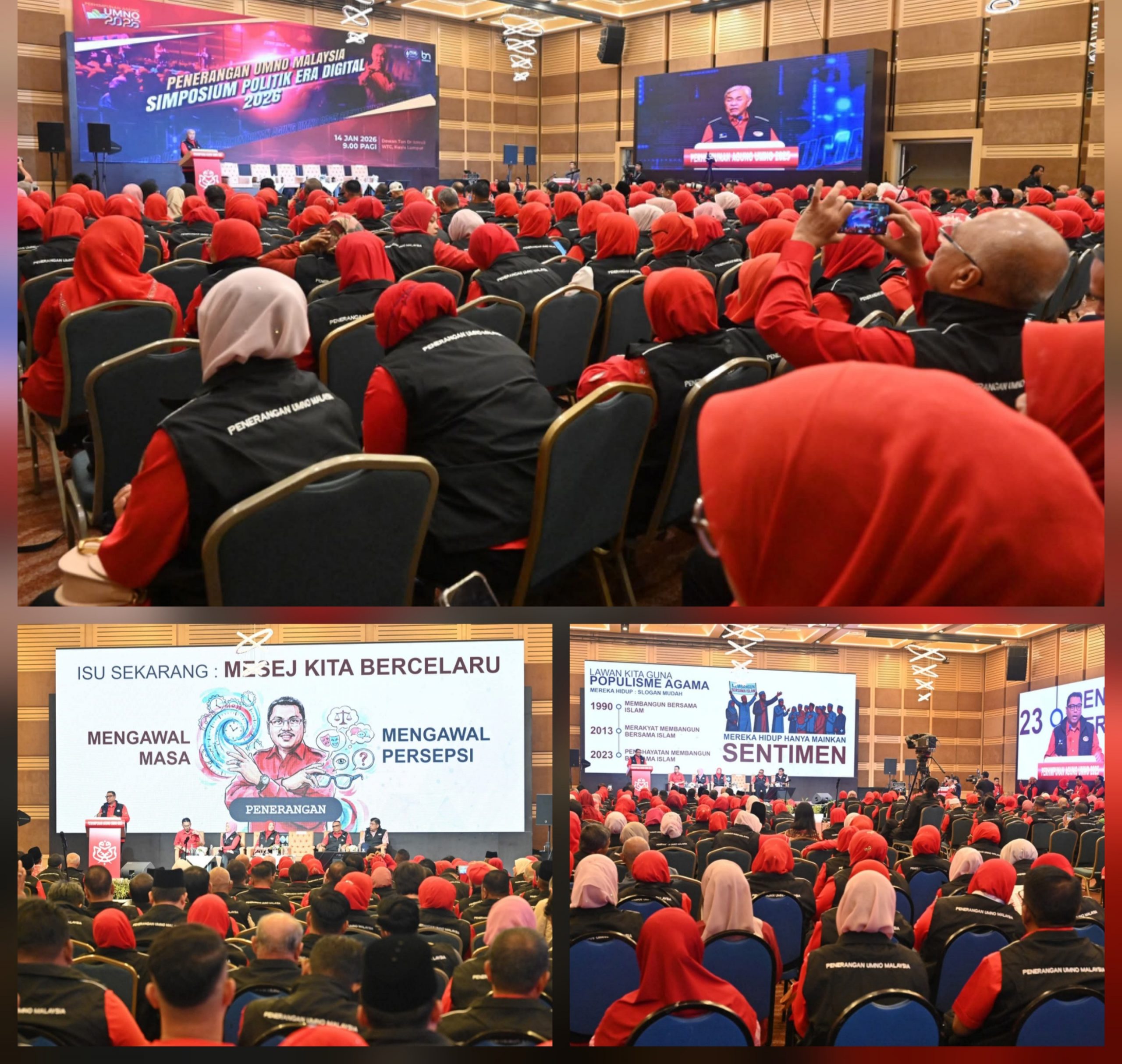 KUALA LUMPUR 14 Jan. – Program ‘pemanas’ Perhimpunan Agung UMNO (PAU) 2025 di Pusat Dagangan Dunia (WTC) pada hari kedua hari ini bermula dengan Simposium Politik Era Digital 2026 yang berlangsung di Dewan Tun Dr Ismail, hari ini. Pada masa yang sama pendaftaran perwakilan dari seluruh negara juga bermula pagi ini di WTC. Sementara itu, simposium separuh hari anjuran Penerangan UMNO Malaysia itu adalah sebagai platform perbincangan strategik bagi membincangkan landskap politik semasa yang semakin dipengaruhi oleh perkembangan teknologi digital, media sosial serta perubahan corak pemikiran pengundi, khususnya generasi muda.…