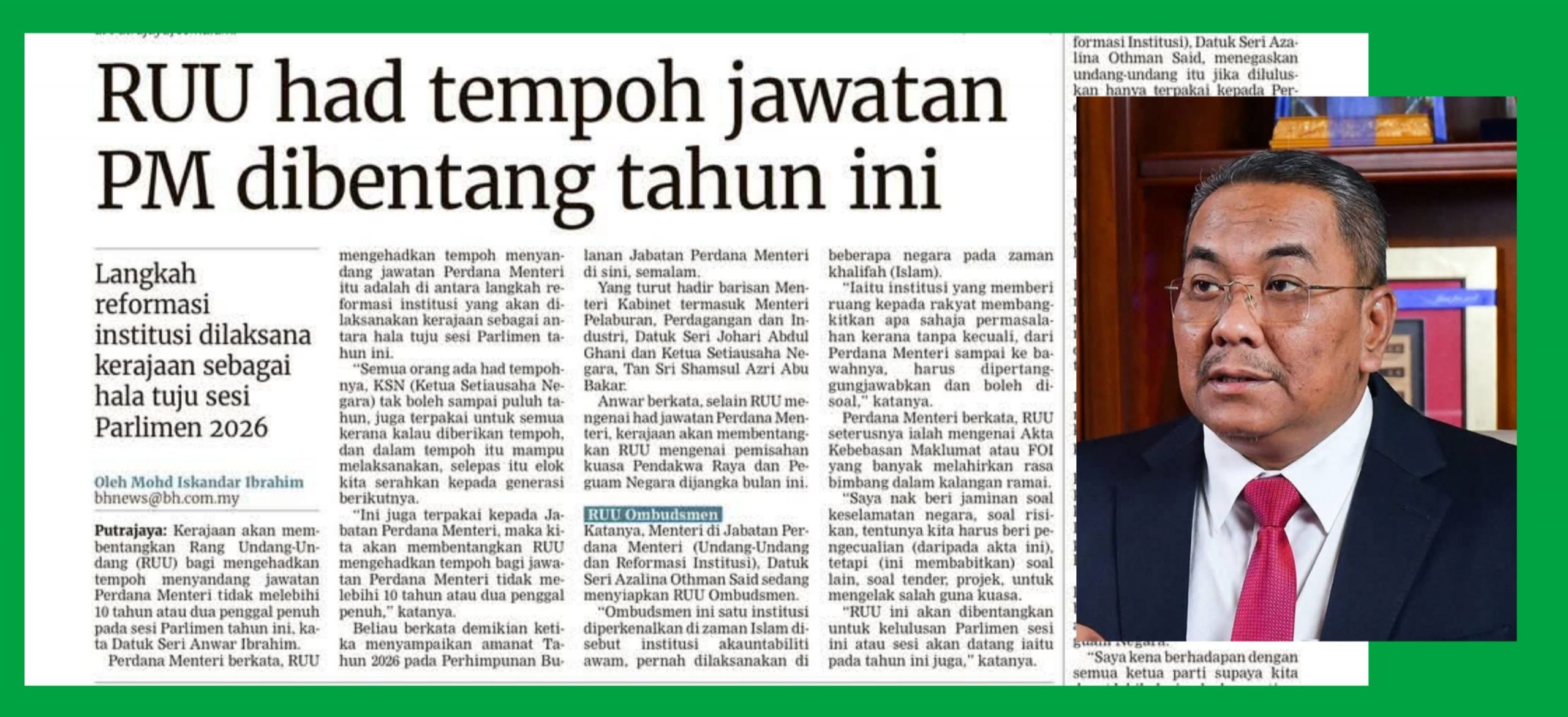 ALOR SETAR 6 Jan. – Tempoh seseorang memegang jawatan Perdana Menteri bergantung kepada prestasi penyandang jawatan itu, bukannya tempoh masa, kata Menteri Besar Kedah, Muhammad Sanusi Md Nor. Beliau berkata, tidak menjadi masalah masalah sekiranya penyandang jawatan itu menunjukkan prestasi yang baik dan memberi manfaat kepada rakyat serta negara. “Kalau prestasi PM bagus, berapa penggal pun tak mengapa, sehingga 10 tahun, 10 penggal pun tak ada masalah. Kalau prestasi PM itu tidak bagus, tak payah tunggu habis satu penggal,” katanya. Beliau mengulas kenyataan Perdana Menteri, Anwar Ibrahim yang memaklumkan Rang…