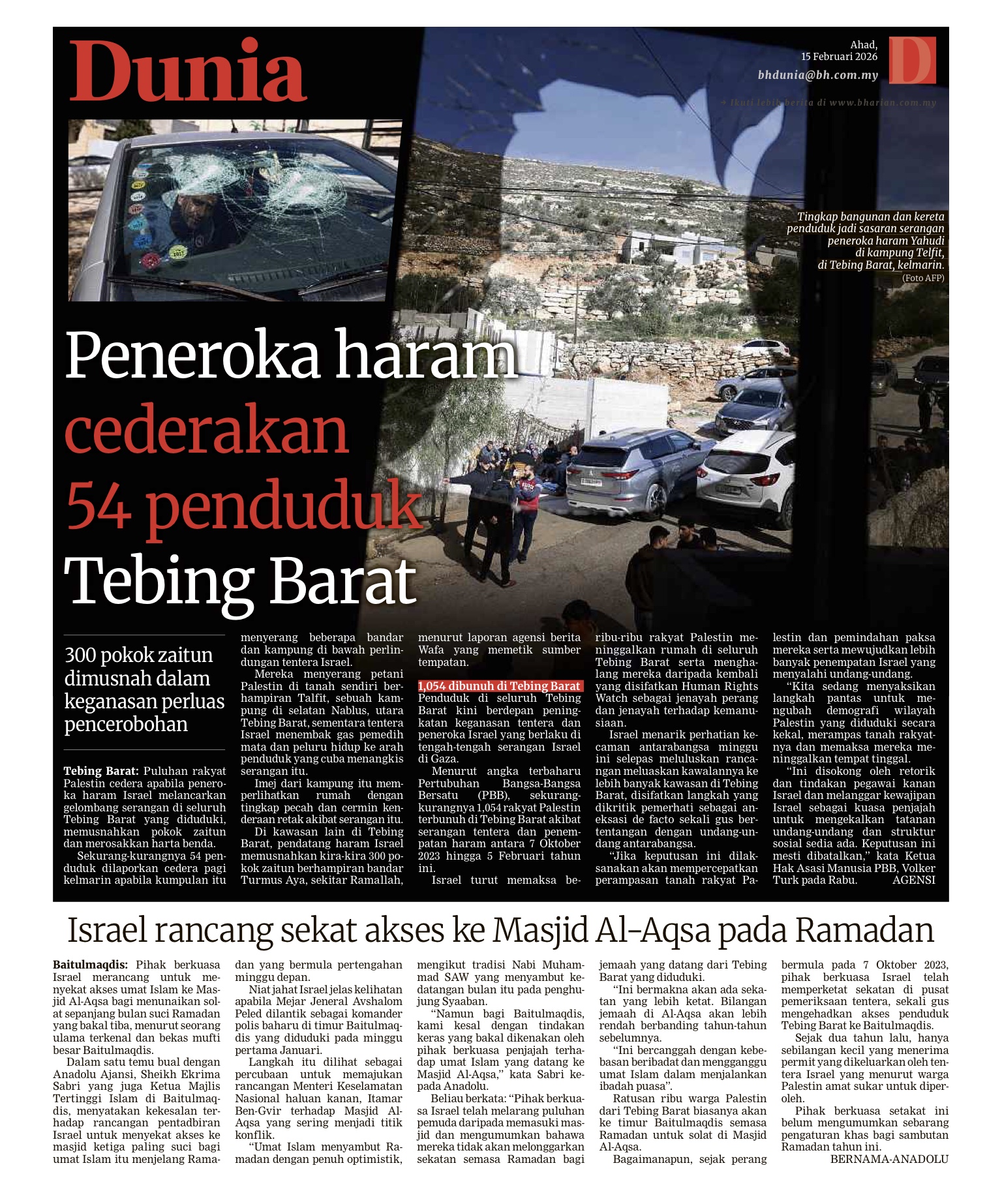 RAMALLAH – Ketua Pesuruhjaya Agensi Bantuan dan Kerja Pertubuhan Bangsa-Bangsa Bersatu untuk Pelarian Palestin (UNRWA), Philippe Lazzarini menyatakan bahawa Israel terus memberikan tekanan politik bagi menghapuskan agensi itu. Katanya, agensi itu berada di bawah tekanan yang amat besar dan Israel terus melanggar undang-undang antarabangsa. Lazzarini dalam sidang media, di luar Persidangan Keselamatan Munich di Munich, Jerman menjelaskan bahawa situasi di Semenanjung Gaza “kekal tragik”, dengan penduduk kehilangan hampir segala-galanya. Beliau berkata, penduduk bergelut untuk terus hidup akibat serangan Israel di Semenanjung Gaza manakala kanak-kanak tidak bersekolah selama lebih dua tahun,…