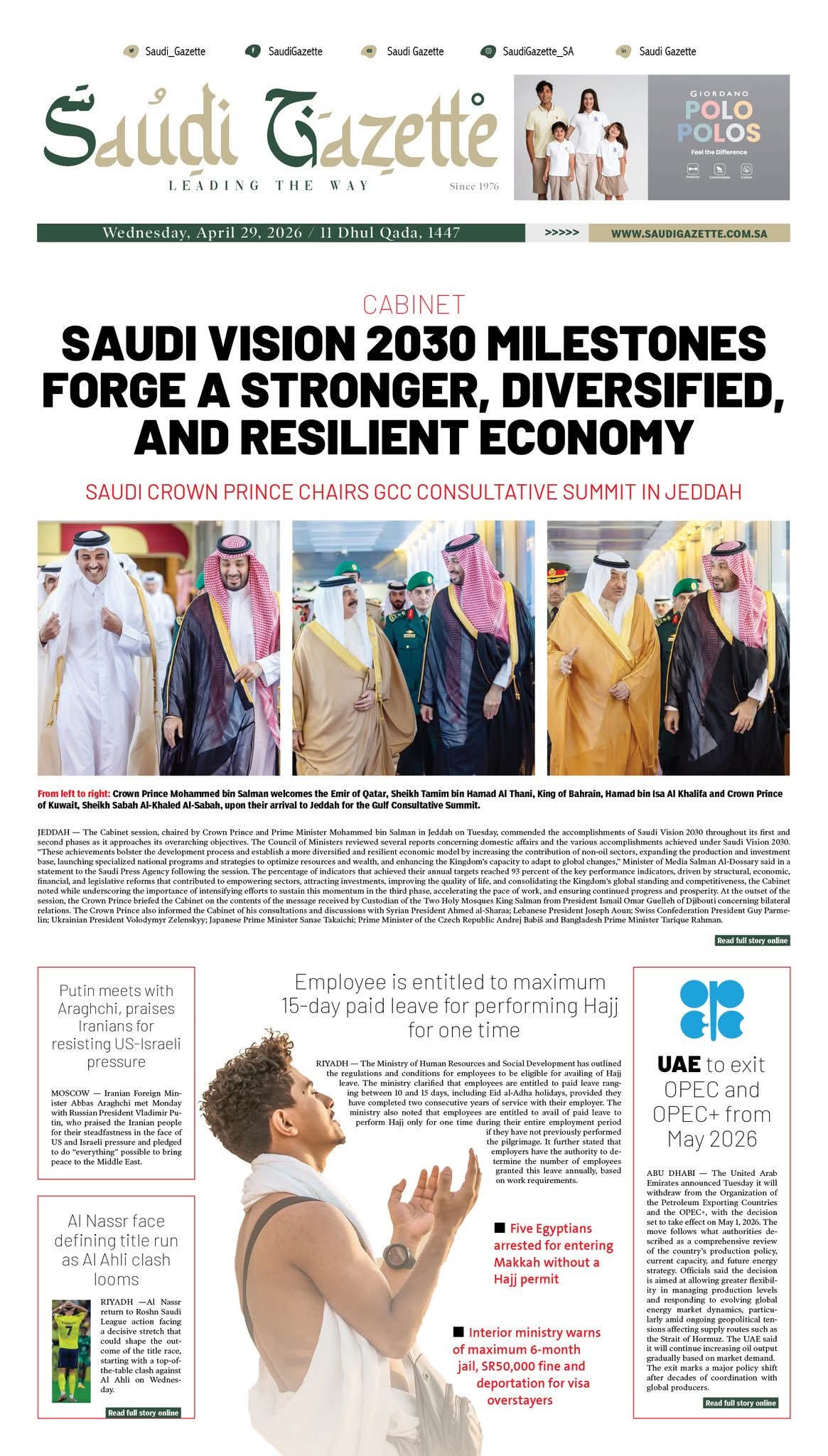 JEDDAH – Pemimpin Majlis Kerjasama Teluk (GCC) membincangkan perkembangan serantau dan antarabangsa semasa sidang kemuncak yang...
