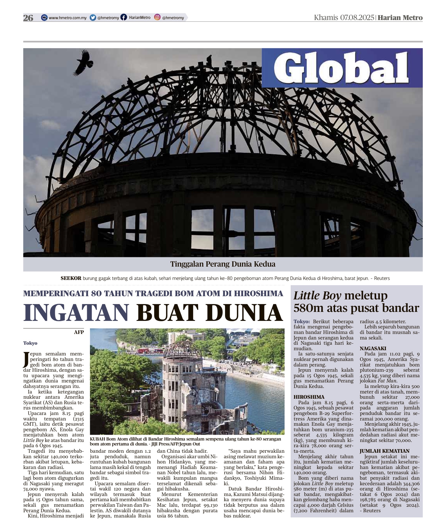 BAITULMAQDIS – Pihak berkuasa Israel melanjutkan larangan masuk ke Masjid Al-Aqsa terhadap Mufti Besar Baitulmuqaddis dan Wilayah Palestin, Sheikh Mohammed Hussein, berikutan khutbah beliau yang mengkritik dasar Israel di Gaza. Peguam Sheikh Hussein memberitahu, larangan awal selama lapan hari itu kini dilanjutkan hingga enam bulan, sekali gus menghalang tokoh agama terbabit daripada memasuki tapak suci di Baitulmuqaddis Timur. Melalui khutbah Jumaat pada hujung Julai lalu, Sheikh Hussein mengecam dasar kebuluran yang dikenakan Israel terhadap dua juta penduduk Palestin di Gaza. Beliau kemudian dipanggil pihak berkuasa Israel pada 27 Julai lalu…