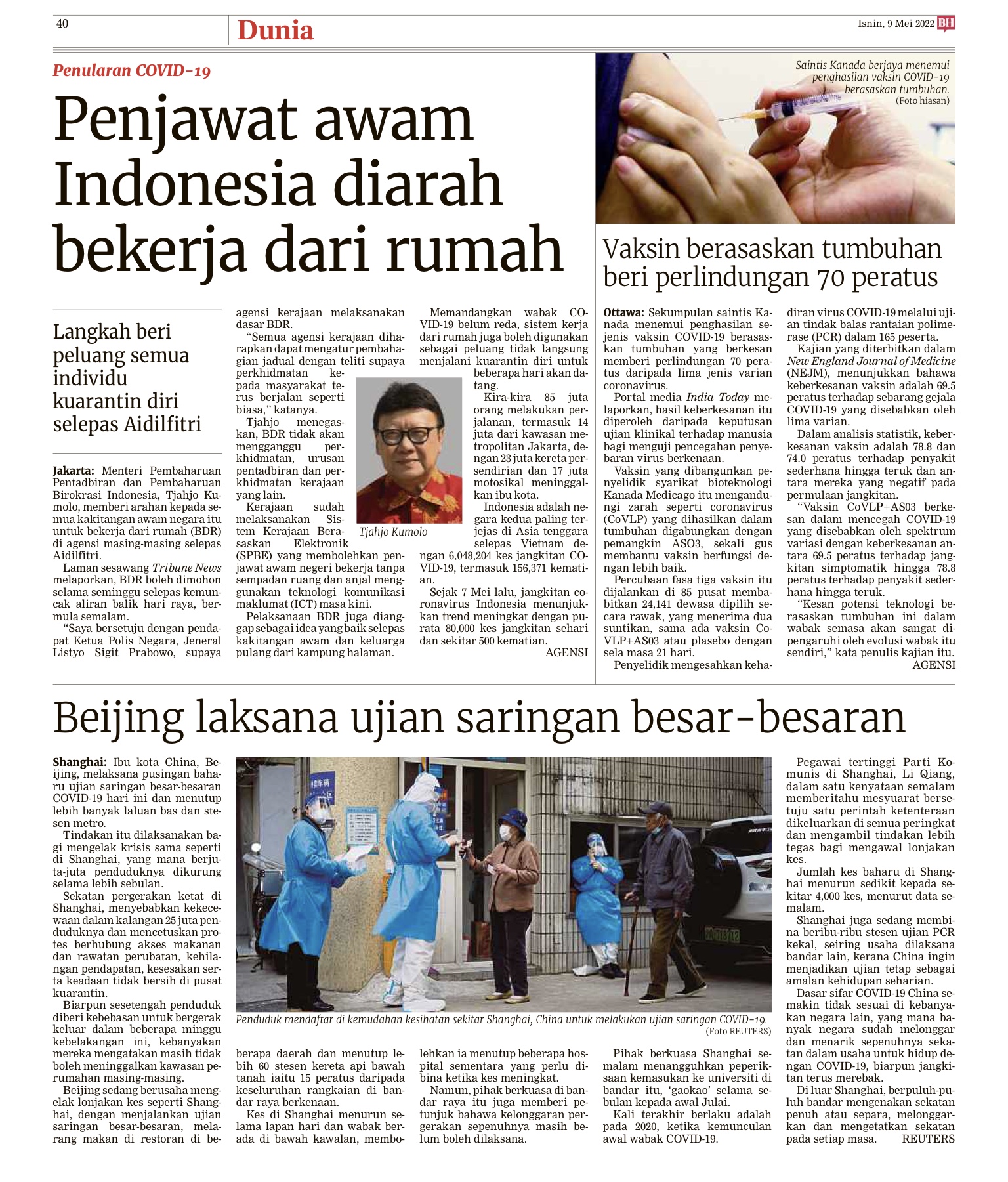 SHANGHAI: Dalam usaha menghapuskan penularan jangkitan Covid-19 di luar kawasan kuarantin menjelang akhir bulan ini, Shanghai mengetatkan perintah berkurung di seluruh 16 daerah di bandar itu. Sekatan itu kemungkinan akan berbeza-beza kerana beberapa daerah telah mencapai sasaran dan sekatan pergerakan secara amnya akan kekal sehingga akhir Mei berikutan kebimbangan lonjakan kes. Pendedahan akaun media sosial penduduk di beberapa daerah serta siaran media sosial menunjukkan kerajaan bandar itu mempercepat dan memperluaskan usaha untuk memindahkan kontak rapat kes positif ke pusat kuarantin. Beberapa penduduk mendakwa mereka diarah berpindah ke kemudahan itu walaupun…