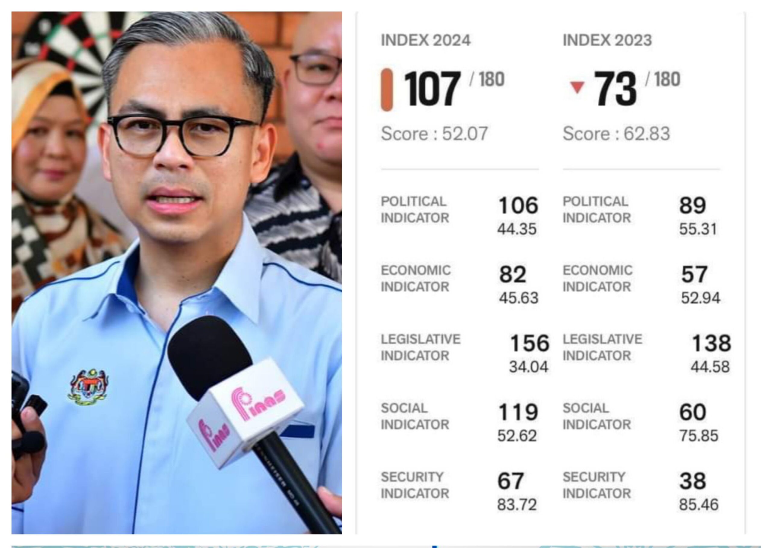 TANJONG 4 Mei – Menteri Komunikasi Fahmi Fadzil menyifatkan kedudukan terkini Malaysia dalam Indeks Kebebasan Media masih dianggap baik berbanding pemerintahan kerajaan sebelum ini. Katanya, kedudukan Malaysia di tangga ke-107 berdasarkan Laporan Indeks Kebebasan Media Dunia 2024 yang disiarkan Wartawan Tanpa Sempadan (RSF) semalam, tidak begitu teruk. “Kalau berada di tangga 107 (dalam Indeks Kebebasan Media), itu bagi saya pencapaian masih tidak memuaskan tetapi ia juga tidak terlalu teruk. Pada 2021, kita berada di tangga 119, manakala pada 2022 di tangga 113. Namun, kedudukan sekarang masih baik berbanding zaman pemerintahan…